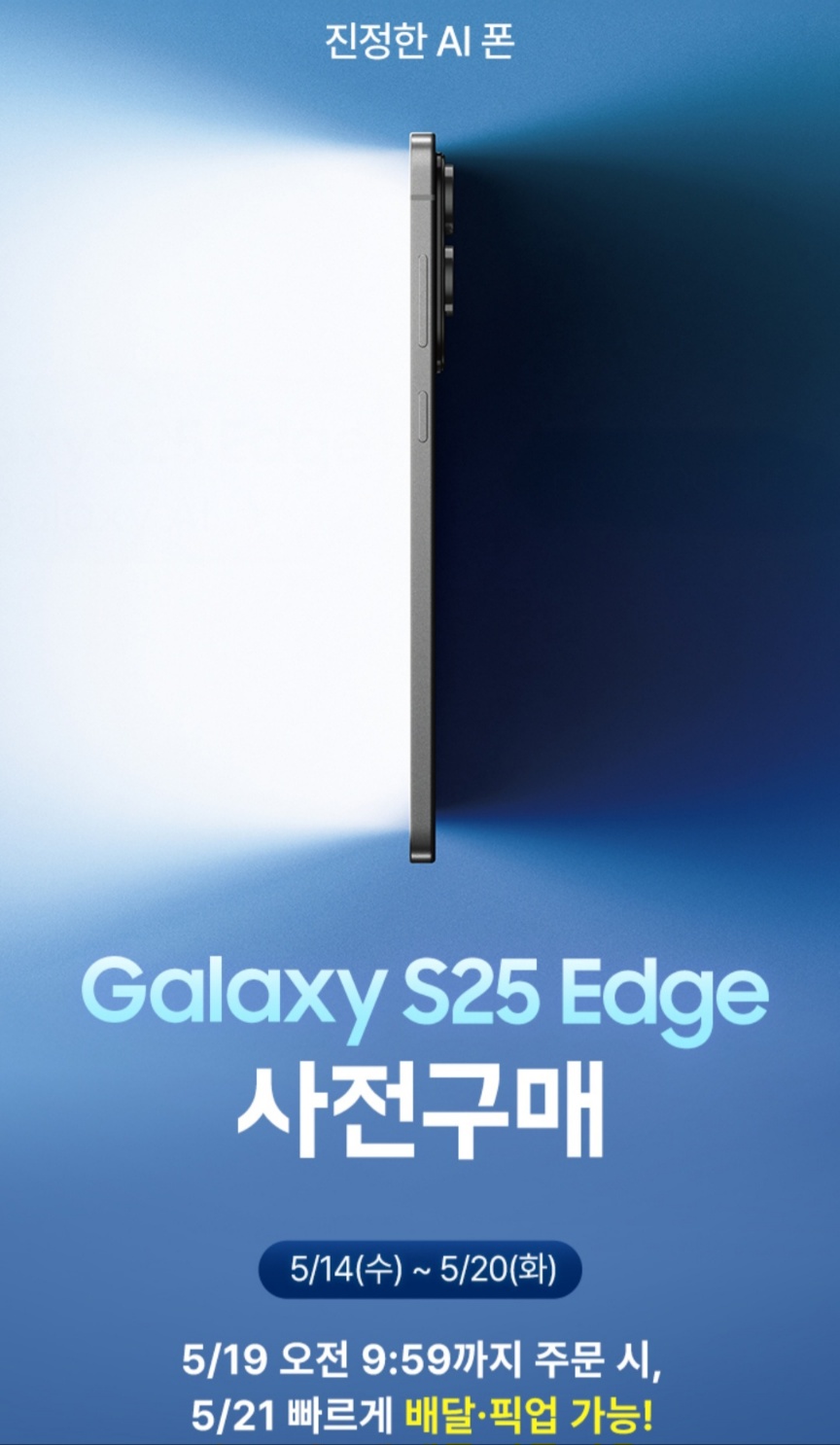 S25 엣지의 사전예약 기간은 2025년 5월 14일부터 5월 20일까지 총 7일간입니다. 사전예약자는 5월 23일부터 제품을 배송받을 수 있으며, 정식 출시는 5월 26일로 예정되어 있습니다. 한정 수량으로 제공되는 특별 사은품과 보조금 혜택은 조기 마감될 수 있으므로 빠른 예약이 중요합니다.