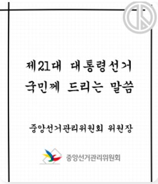 중앙선거위원회의 제21대 대통령선거‘국민께 드리는 말씀’발표