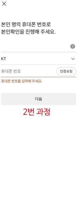 - 이름, 주민등록번호, 휴대폰 본인인증을 완료합니다.