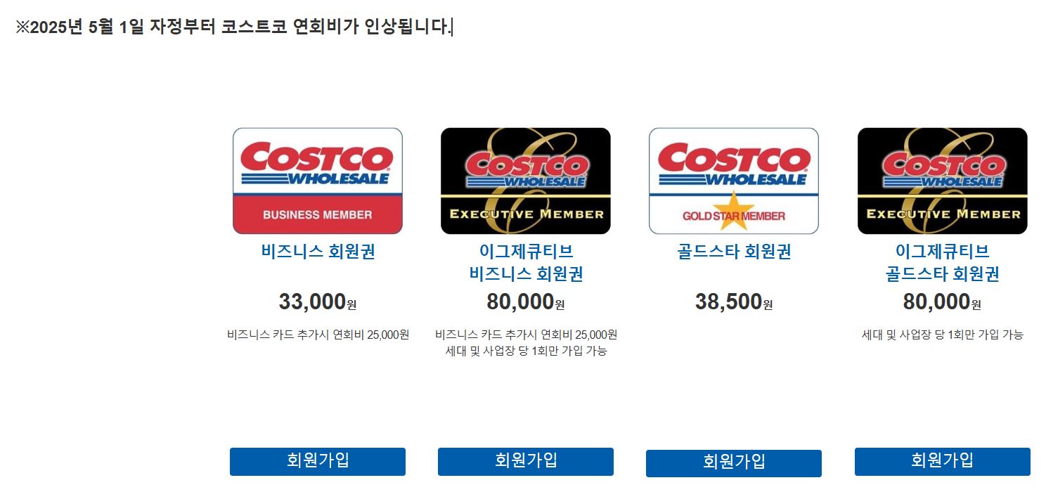 매년 수십만 명이 선택하는 창고형 할인매장 코스트코. 하지만 코스트코 회원권 종류와 가격, 혜택이 다양하다 보니 가입 전에 헷갈리기도 하고, 25년 05월 부터 회원권 인상 소식이 있어 오늘은 코스트코 회원권의 모든 종류, 연회비, 이그제큐티브 업그레이드 혜택, 심지어 연회비 면제 방법까지 한눈에 정리해드릴게요!